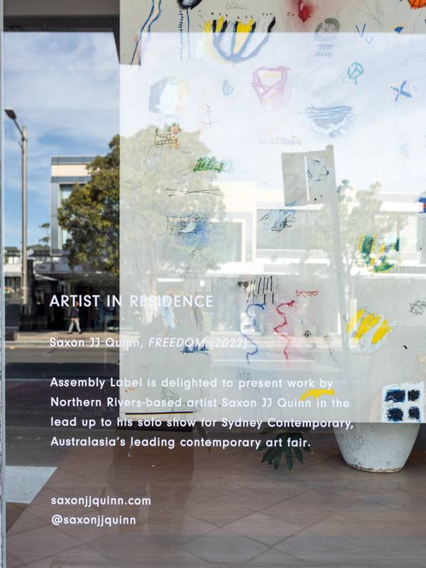 Over the past few months artist Saxon JJ Quinn’s work has criss-crossed the globe, making appearances at exhibitions in New York, Madrid, Los Angeles and Copenhagen. But this September, Saxon’s sights will be set on Sydney where he’ll show a new body of work at Sydney Contemporary, Australasia’s leading contemporary art fair. Saxon’s solo show History Repeating will open at Saint Cloche, and in the lead up Saxon joins our Artist in Residence series with FREEDOM (2022), which will be on display at Assembly Label Paddington until September 11.