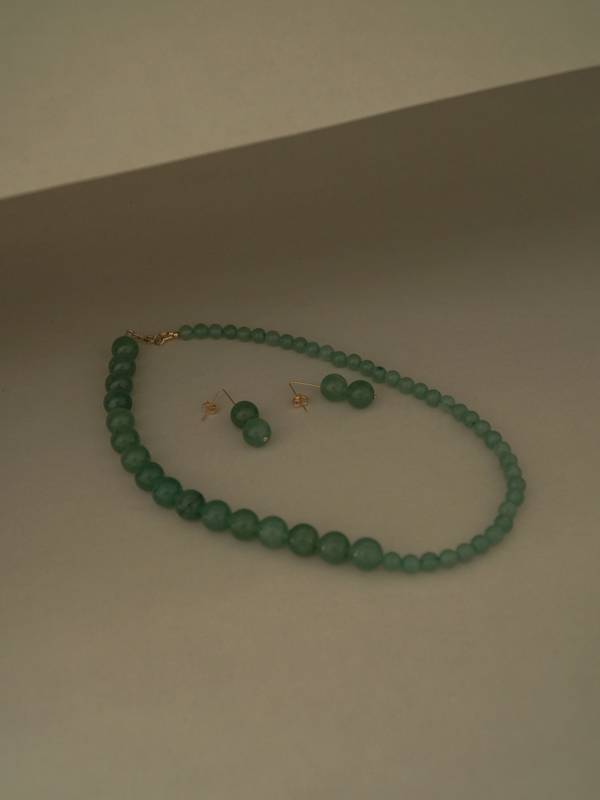 Comprised of a Green Aventurine necklace and earrings, the Assembly Label x Vermeer Studio jewellery collection was inspired by a shared appreciation for our environment and surrounds. “We resonate with the desire to create timeless and versatile pieces and we share the same values as Assembly Label, being a socially and environmentally responsible company,” Tané says of the collaboration. The colour of the Green Aventurine — a stone spiritually associated with opportunity and abundance — resonated with both teams for its enduring beauty. “We love the simplicity of the collaboration pieces and how they complement Assembly Label garments. We are gravitating towards greens and blues at the moment, so this green is very fitting,” muses Gabriel.