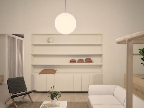 Tasked with translating Assembly Label’s design language for this new location, the team at IF Architecture “leaned into the principles of minimalist design” and established visual harmony through thoughtfully layered textures, hard and soft materials, and warm and cool neutral tones. Natural oak floorboards with a soft cloud-like finish, travertine tiles at the entrance and warm off-white walls with a fine grain set the foundation for the entire space. Assembly Label’s connection with coastal environments is expressed through more layers of natural materials in the changing rooms, including woven linen blend curtains that create an elegantly draped effect and a sisal floor covering in a chevron pattern that introduces the feeling of natural texture underfoot. These elements encourage relaxation and create a seamless transition throughout, inviting visitors to explore new season collections and design offerings at their own pace.